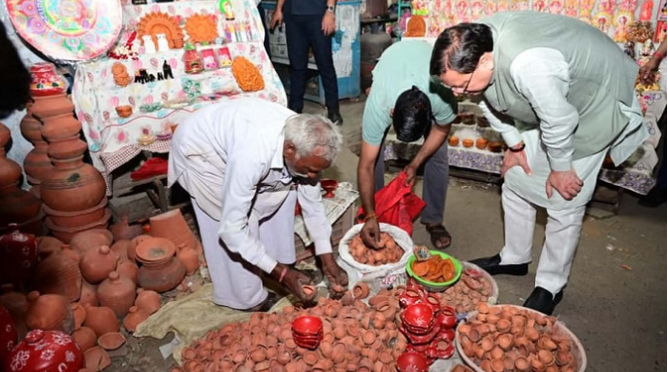 मुख्यमंत्री पुष्कर सिंह धामी बुधवार देर शाम चंपावत से सड़क मार्ग के माध्यम से खटीमा पहुंचे। उन्होंने खटीमा बाजार का दौरा किया और दीपावली पर्व के लिए दुकानों से मिट्टी के दीये खरीदे।
