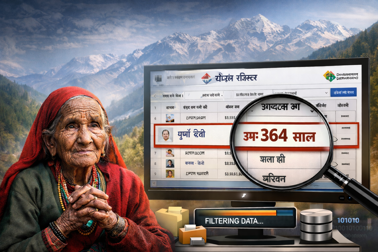 देहरादून: उत्तराखंड में पंचायती राज और परिवार रजिस्टर से जुड़े सरकारी रिकॉर्ड में गंभीर अनियमितताएं उजागर हुई हैं। सरकारी आंकड़ों में प्रदेश के कई जिलों में ऐसे हजारों लोग दर्ज हैं, जिनकी उम्र 100 साल से अधिक दिखाई गई है और उन्हें अभी भी जीवित बताया गया है। इनमें एक महिला की उम्र 364 साल और एक व्यक्ति की उम्र 248 साल दर्ज होना सबसे अधिक चौंकाने वाला है।